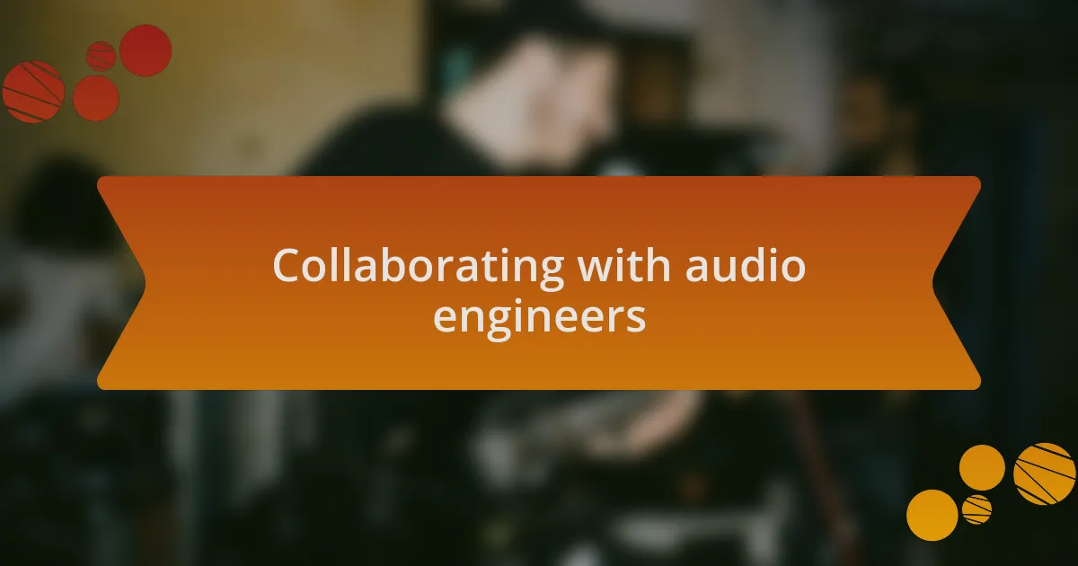When it comes to collaborating with audio engineers, I find it essential to establish open communication from the get-go. I vividly recall a night when I was setting up for a big show and the head audio engineer was frustrated with the venue’s sound system. Instead of letting tension build, I took the time to discuss their concerns over a quick coffee. That simple chat not only cleared the air but also helped us align our goals for the night. How often do you consider the power of a conversation in resolving technical issues?